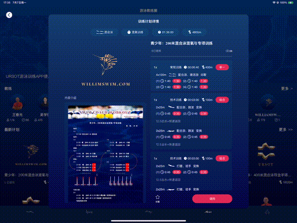 在使用URSOT游泳运动训练系统的训练计划时,如有遇到训练细节问题,可通过williamswim@vip.sina.com联系。同时欢迎更多的教练员、游泳队、选手、家长朋友,加入URSOT游泳运动训练APP的资源序列,为有需要的游泳同行,提供更详实、多元化的训练参考。
